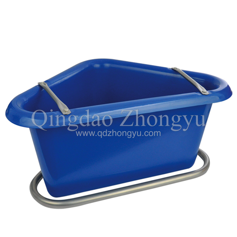 | Description: | 1. Sturdy corner manger for feeding at any height in the stable 2. Use with the support frame to be able to easily remove the manger for cleaning 3. Complete with anti-waste bars 4. Frost proof.. |